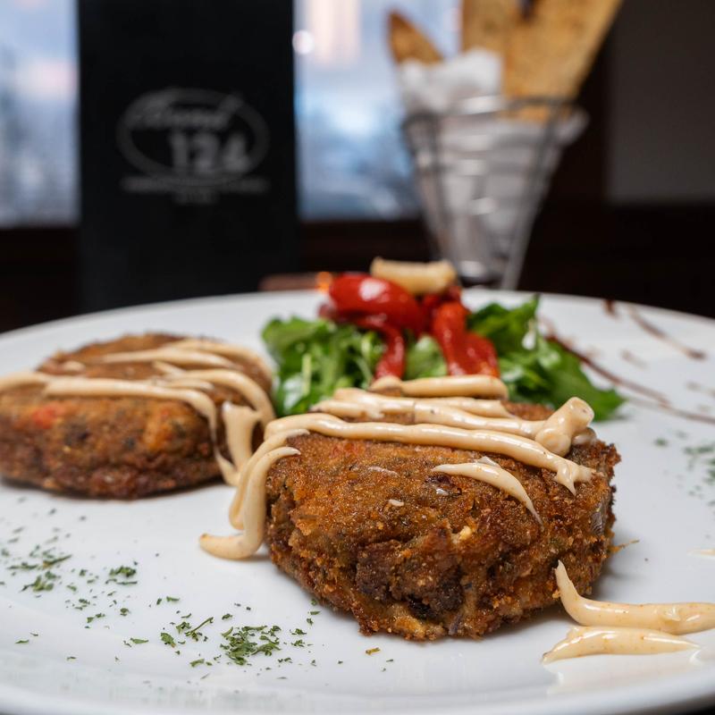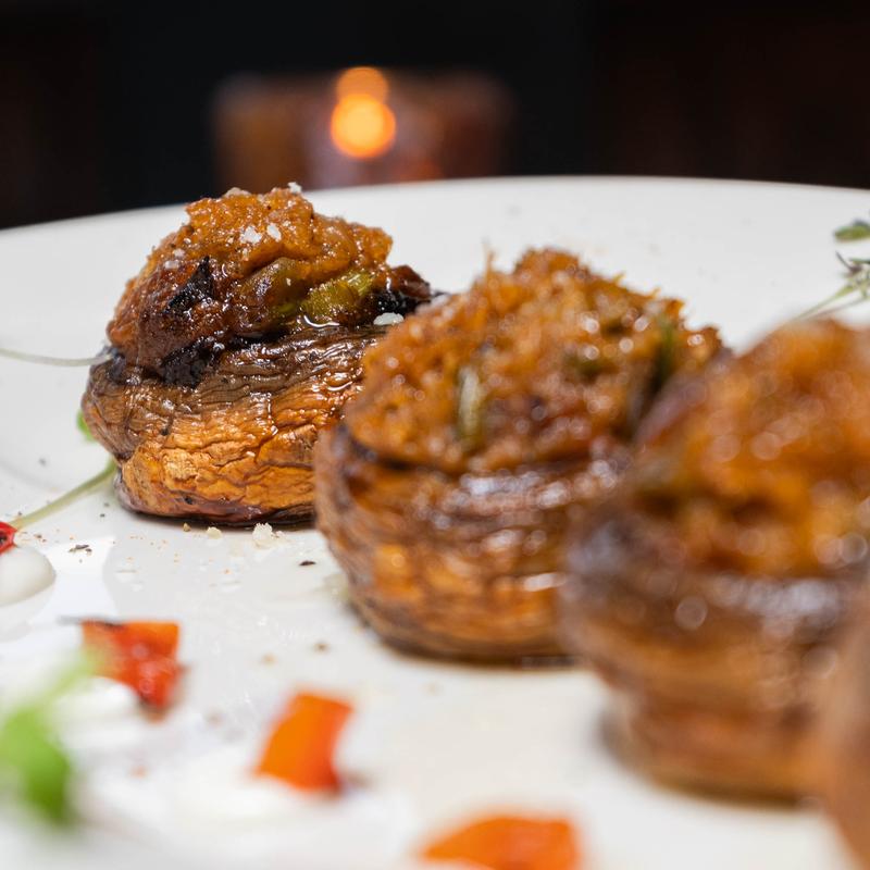 Golden baked cremini mushrooms stuffed with house-made crab stuffing