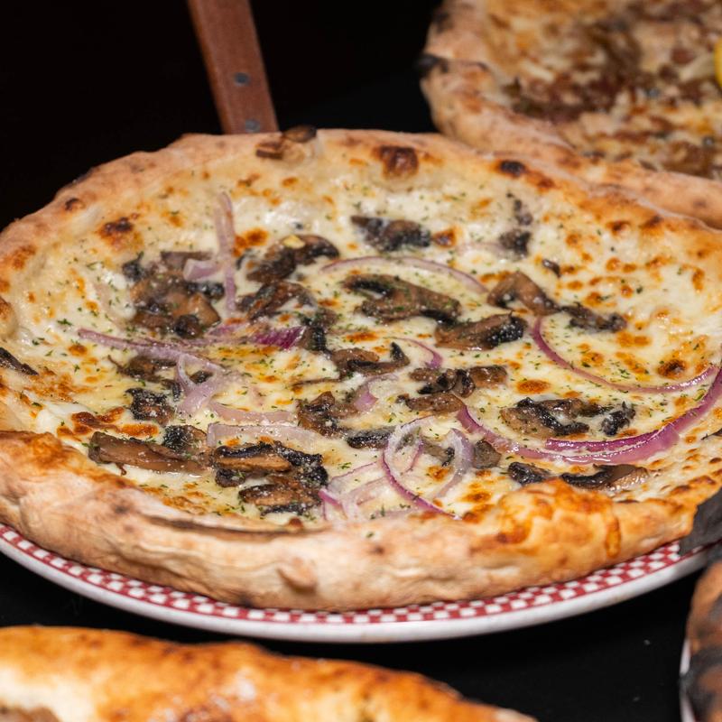 Bechamel cream, sautéed wild mushrooms, fresh mozzarella, and onions. Drizzled with mushroom truffle oil