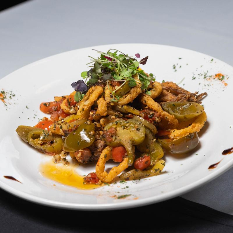 Lightly breaded, tossed with sweet and spicy pepper rings, served with marinara sauce
