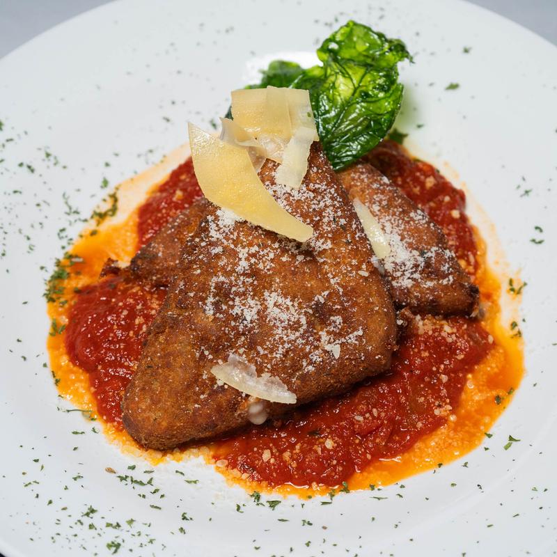 Lightly fried whole milk mozzarella topped with spicy marinara sauce