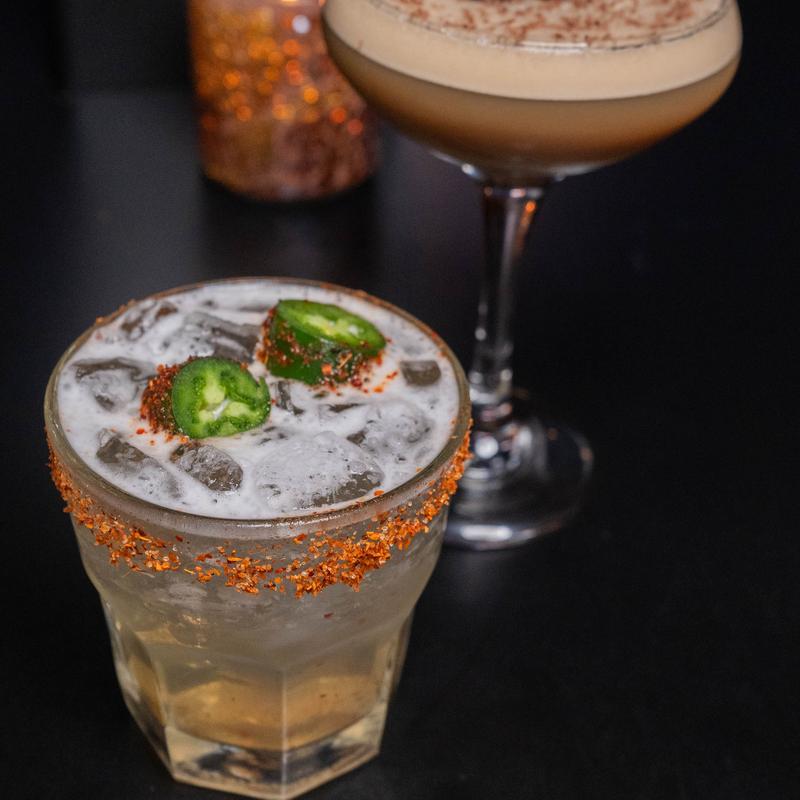 Jalapeño tequila, lime, strawberry, Tajin rim
